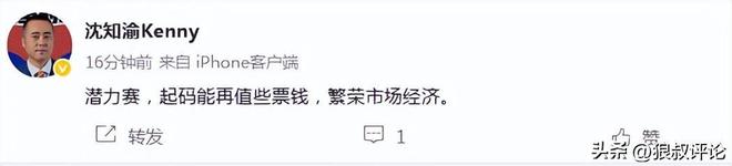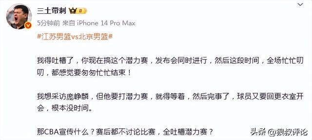 媒体人“三土带刺”发文点评:“我得吐槽了,你现在搞这个潜力赛,发布会同时进行,然后这段时间,全场忙忙叨叨,都感觉要匆匆忙忙结束!